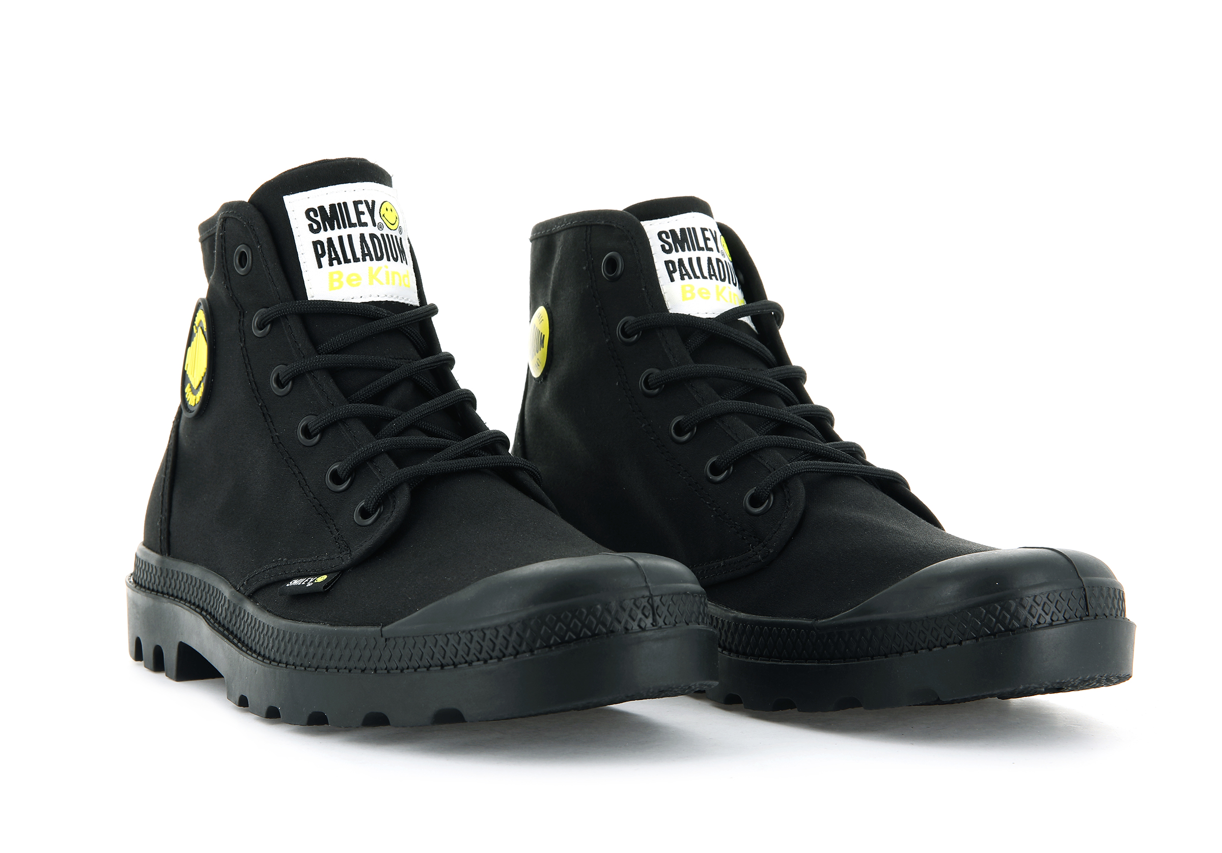 Mit der Mission, das Lächeln für Jahrzehnte zum Mainstream zu machen, hat Palladium seit 1972 die Partnerschaft mit Smiley, den fröhlichen Gesichtern, fortgesetzt. Diese neue Auflage unserer Zusammenarbeit Pampa x Smiley verströmt positive Schwingungen und verbreitet die Nachricht überall dort, wohin Sie die Stiefel tragen. Die Qualität von Palladium trifft anhaltende Positivität. Keep smiling.